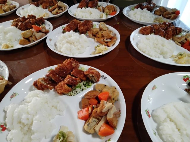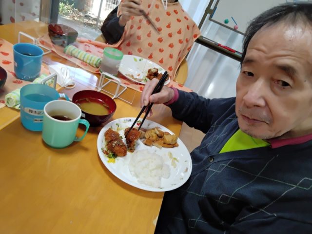 本日のお昼はオーナー様より頂きました牡蠣フライです。みなさん美味しく頂きました!