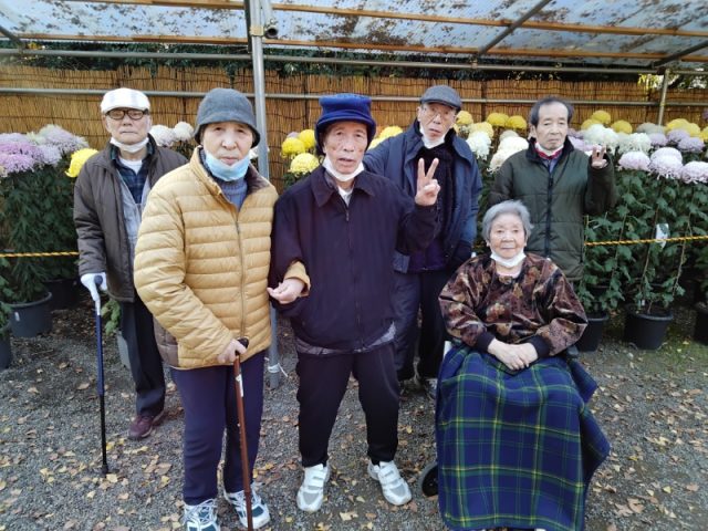 晩秋のさわやかな空気に誘われて、久しぶりにお散歩にでかけました。第一組は事業所周辺を軽く一周し、第二組は少し遠出して、一ノ谷神社の菊まつりを見学しました。風もなくとても穏やかで暖かい日中となりました。