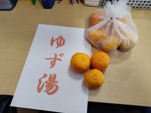 先日、冬至で2日間に分けて利用者の皆様に柚子湯を楽しんでもらいました。