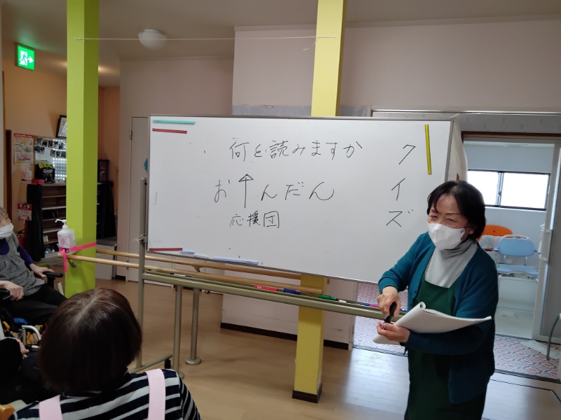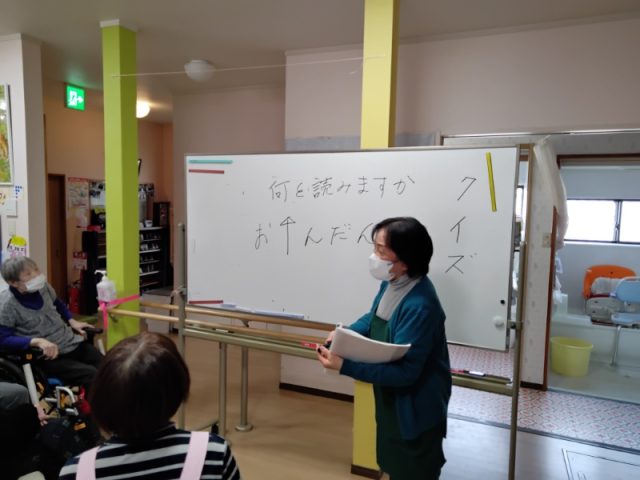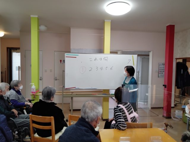 本日のレクリエーションはホワイトボードを使用したクイズを行いました。
