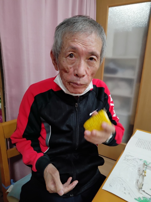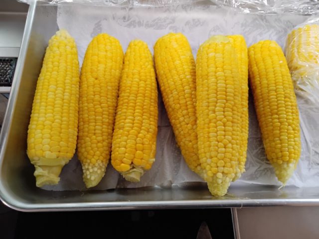 オーナー様から頂いたトウモロコシを「こんなふうに食べるのは懐かしい」と頬をふくらませていました。