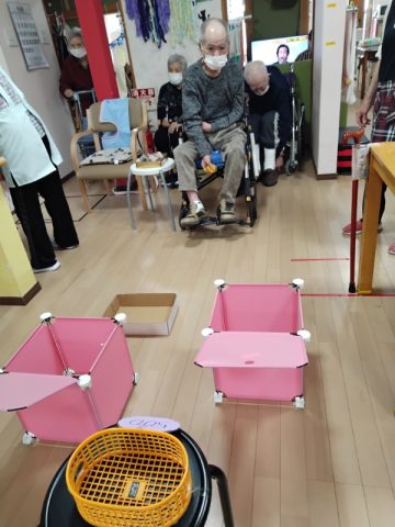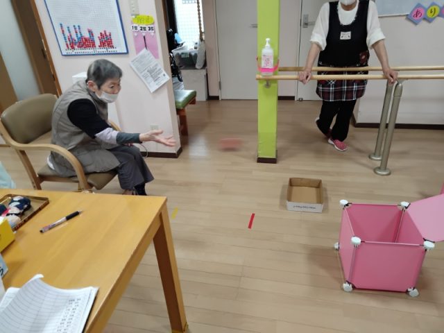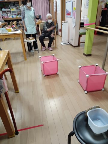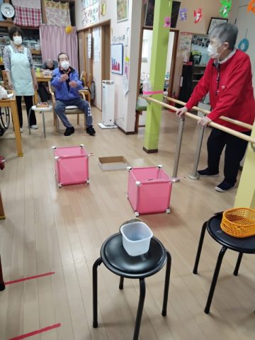 本日のレクリエーションはお手玉投げ得点ゲームです。