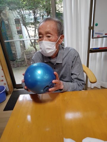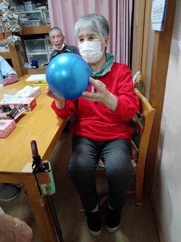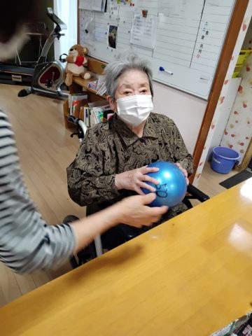 今日のレクリエーションはリズム体操を行い、ボールをキャッチした方が体の部位を答える脳トレを行いました。