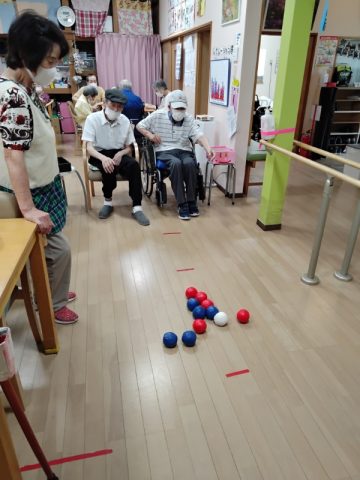 昨日のレクリエーションはボチャの勝ち抜きゲーム。最高の方は9人抜きでした。