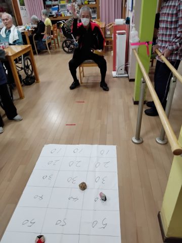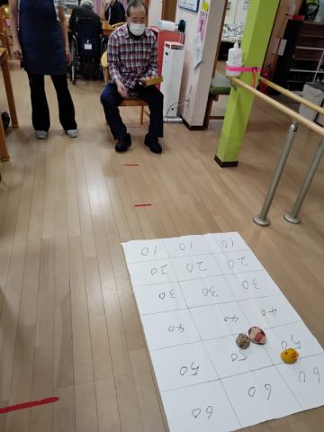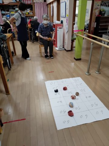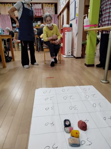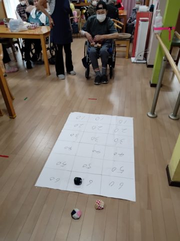 今日のレクリエーションはお手玉数字乗せゲームです。