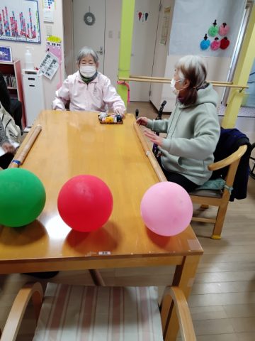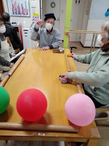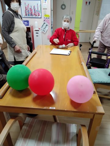 3月11日のレクリエーションは風船お手玉当てゲームを行ないました。