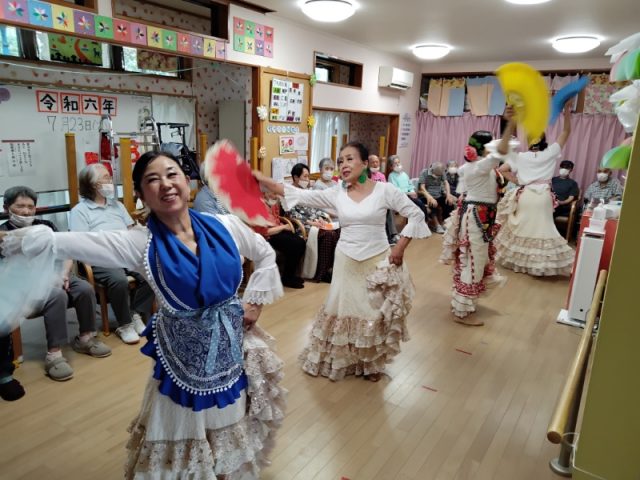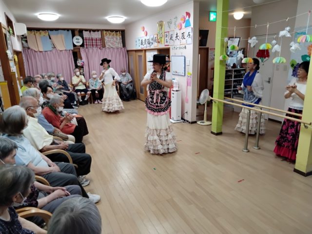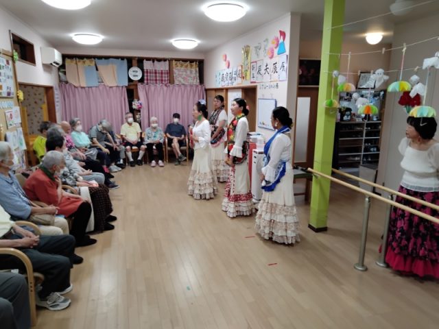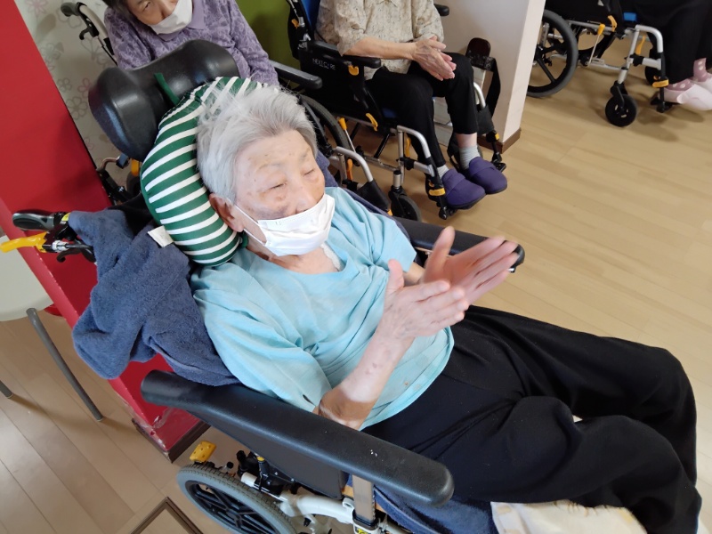氷川きよしの「ドドンパ」、細川たかしの「浪花節だよ人生は」、並木路子の「りんごの唄」を踊りを見ながらみんなで歌いました♫☺️