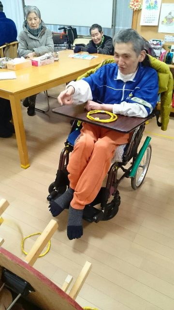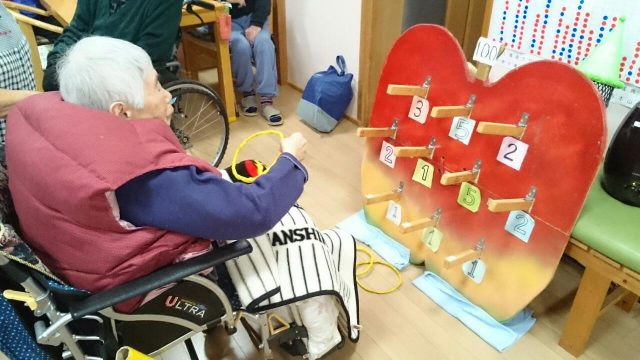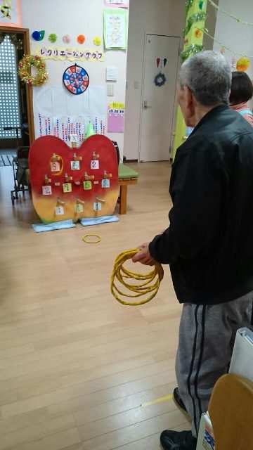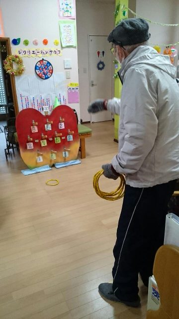 本日の天気はあいにくの雨の日ですが☔ 寒さに負けずに室内での輪投げゲームを行いました😊 今回は難しいの100点の的に入り、高得点の成績がでましたーっ❗ スゴイっ😆⤴⤴