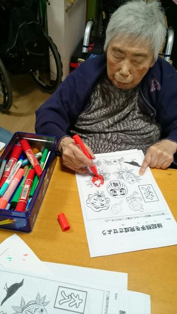 今日は冬至。今日のお風呂はゆず湯♨ ゆず湯で心も体もゆっくりと(*´∇`)🎵ゆずの果皮に含まれるビタミンCなどの成分が、血行促進や風邪の予防に効果があるとされています。利用者の皆さんも風邪をひかずに過ごせますように~✨ 今年も残り10日。新年に向けて縁起熊手の制作を行いました。 夏祭りのうちわを再利用してそれぞれに縁起熊手の飾りに色を染めてもらい貼ってもらいました。新年を迎えるのが楽しみです(^-^)v
