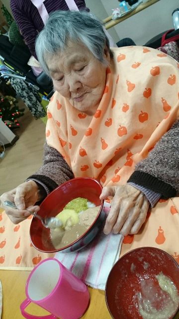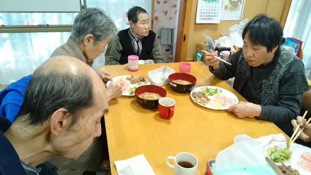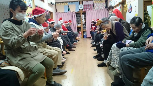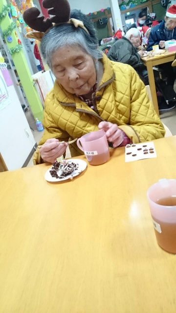 12月23日はクリスマス会🎵 今年もオーナーさんから美味しいお肉を頂きました😊お代わりをする利用者もおり、いつも以上に食べてくれました。