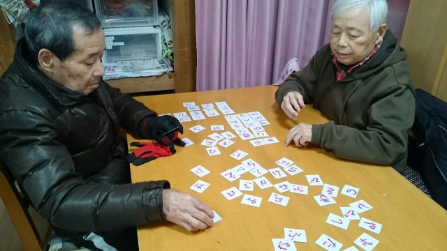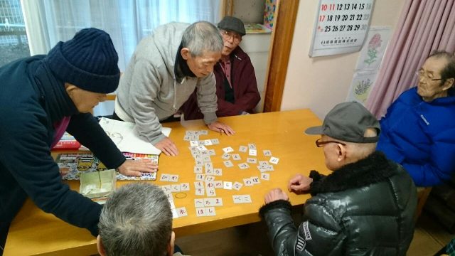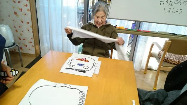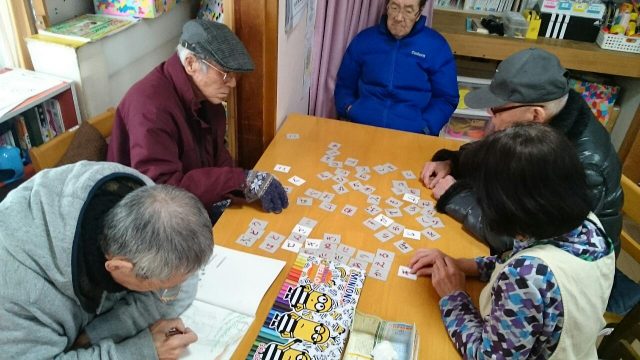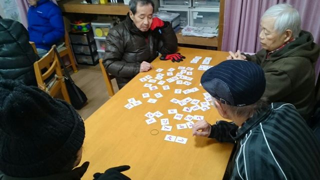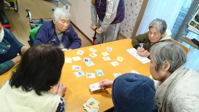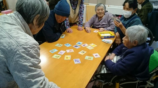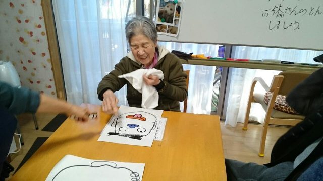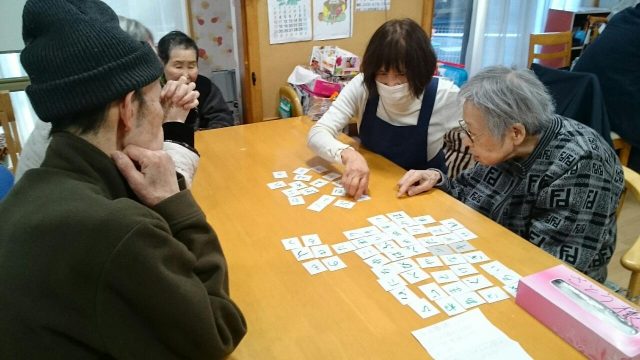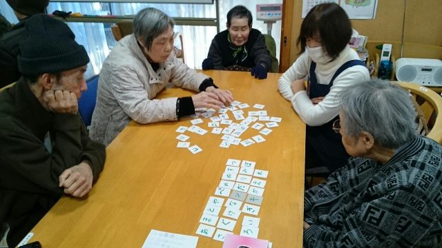 各々のテーブルで言葉探しやカルタゲーム、福笑いなどをしながら過ごされました。