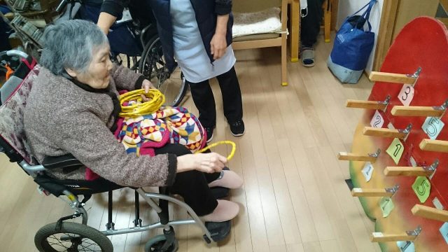 1月12日のレクリエーションは輪投げゲームを行いました。