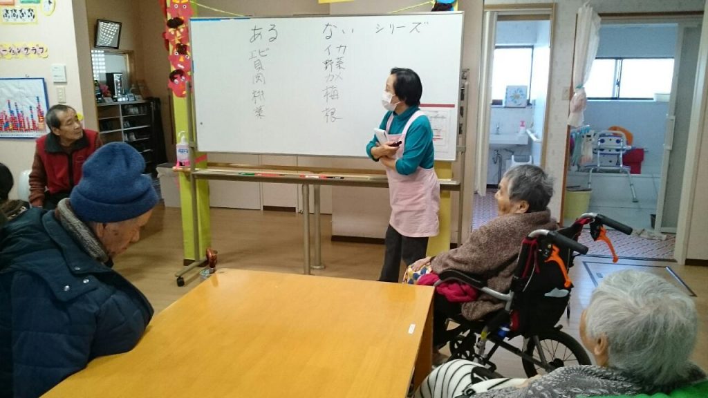 ホワイトボードを使って「あるなしクイズ」を行いました。 けっこうな難問もあり利用者さんスタッフともども頭をひねって考えていました。