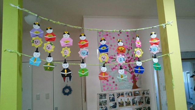 もうすぐ雛祭り🎵ひなたでも利用者様達に折り紙でかわいらしいひな飾りを制作してもらいました。