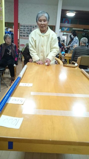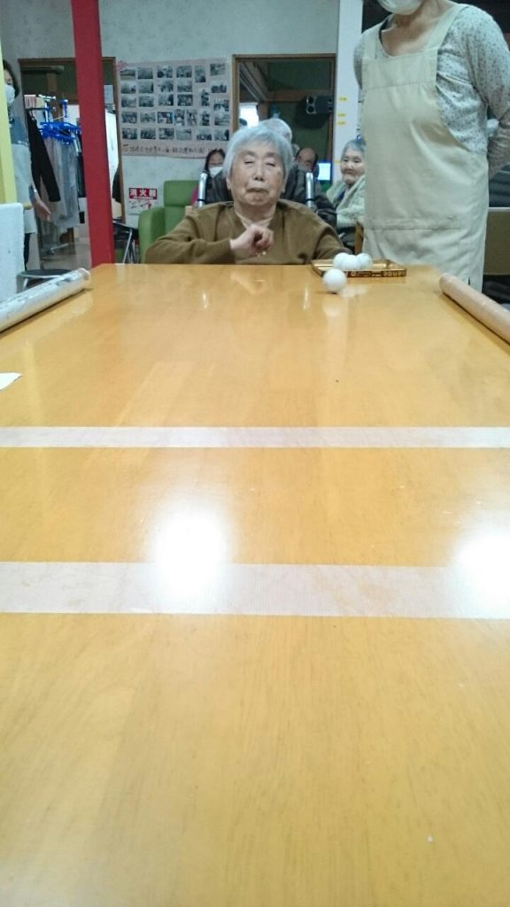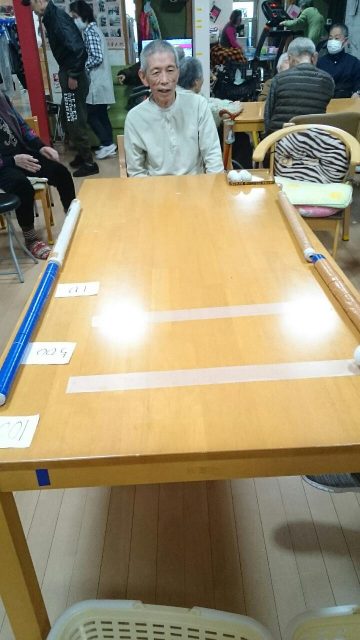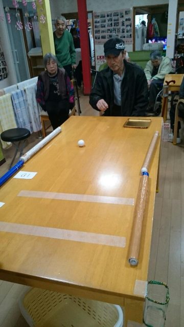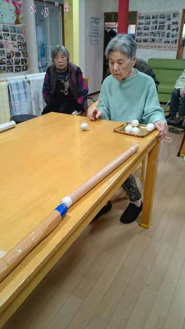 ゴルフボールを転がして、いかにしてテーブルから落とさないようにぎりぎりで止めるか、というゲーム。 無造作に投げるとそのままテーブルから落ちてしまいます。 何事も力加減が大事です。