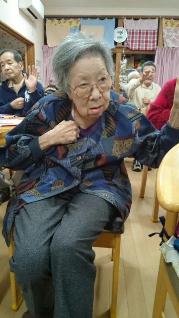 久しぶりにストレッチ体操で体をほぐしたあと、右手と左手を別々に動かす脳トレ運動を行いました。 右手が鼻、左手を交差させて耳。せーので入れ換えます。やってみるとなかなか難しいですよ。 そのあとホワイトボードを使って脳トレを行いました。