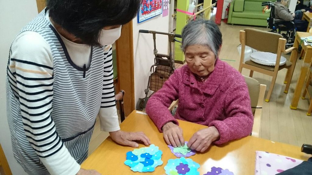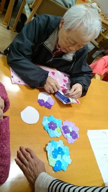 もうすぐ6月。紫陽花の季節がそろそろやってきます。皆さんに紫陽花の制作物を作ってもらいました(*´∇`)