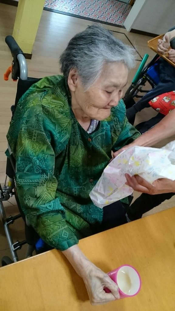 6月は3名様がお誕生月です。みんなでお祝いをしてささやかなプレゼントをお渡ししました。みんなでアイスクリームをいただきました。