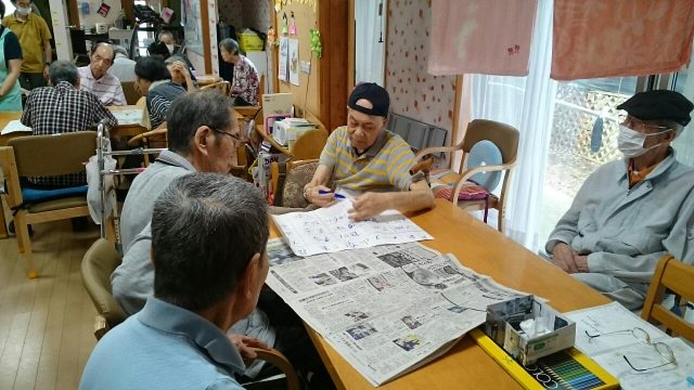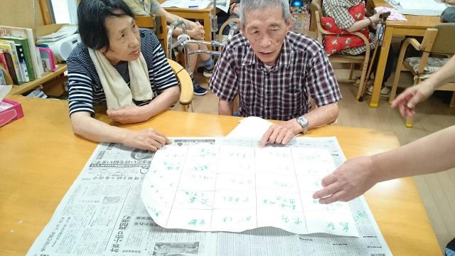 今日のレクは都道府県当てビンゴゲームを各テーブルのチーム戦で行いました。
