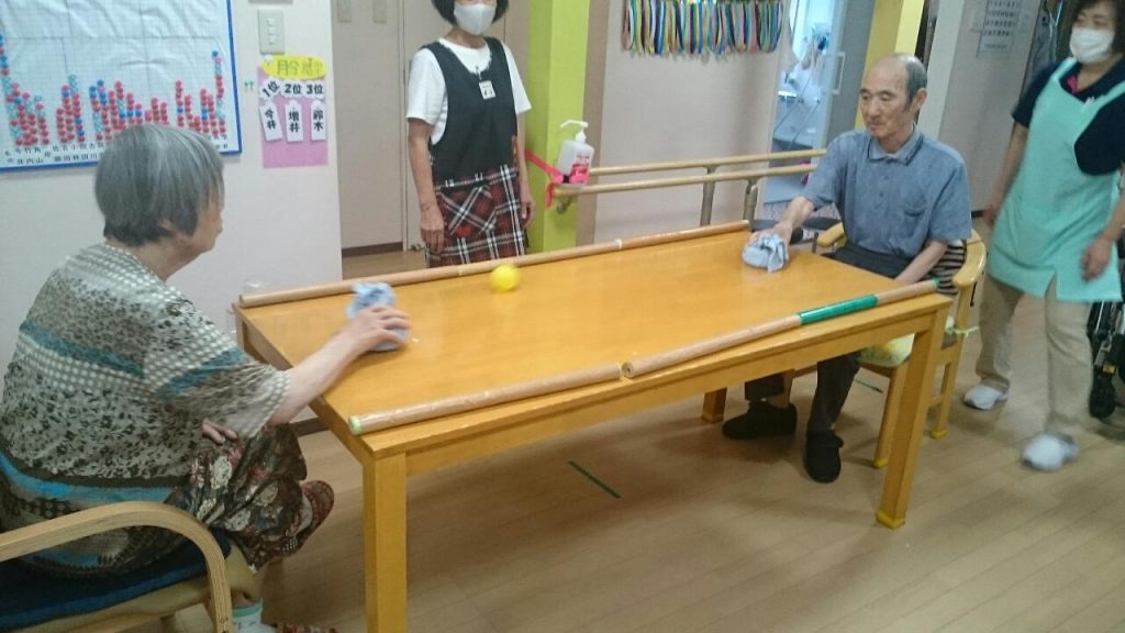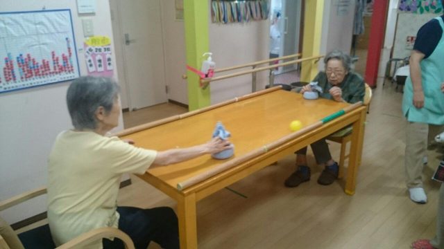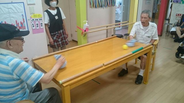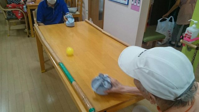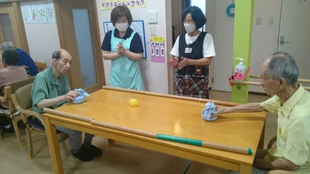 今日のレクは「ハイパーホッケー(もどき)」