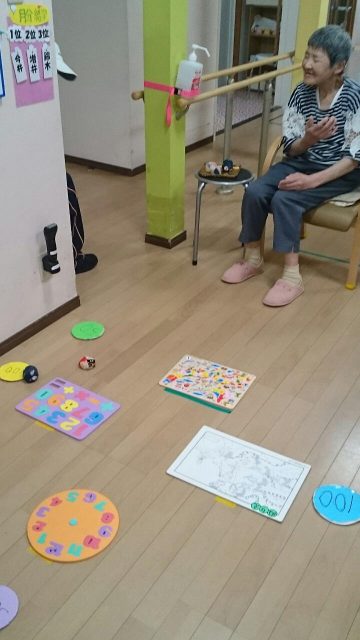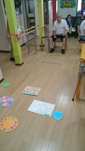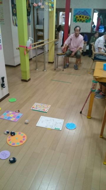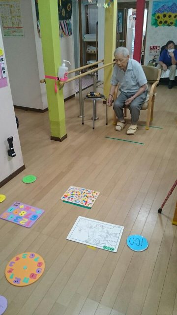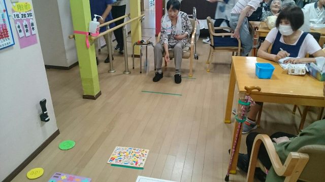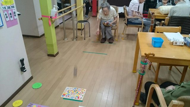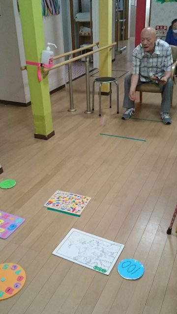 今日のレクは「お手玉ボッチャ」