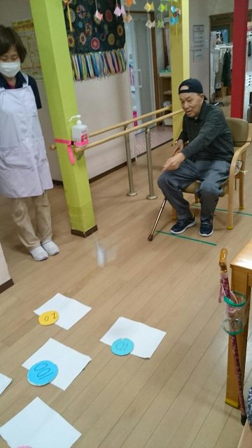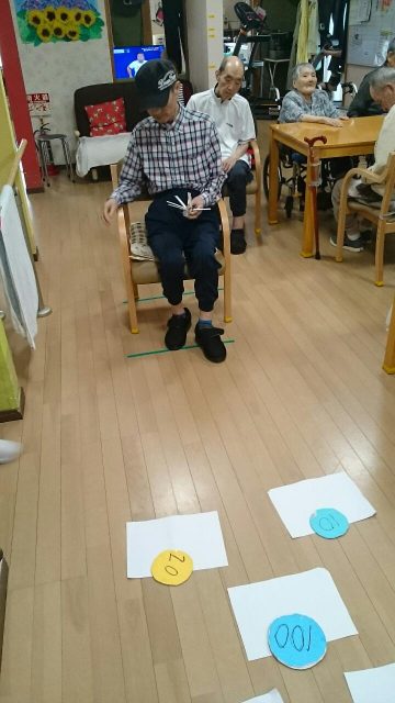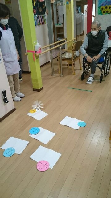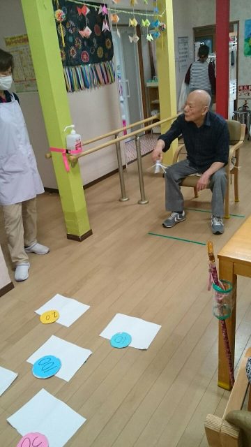 紙コップでプロペラを作って飛ばして見ました。きれいに回ったり急降下したり…みなさん工夫して投げていました。