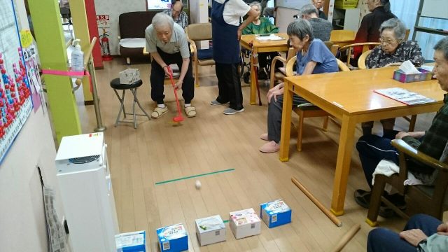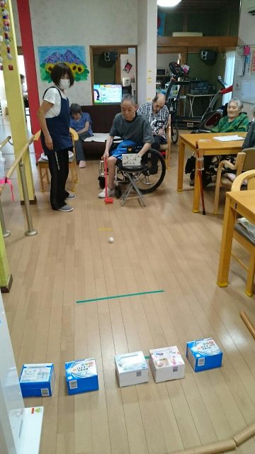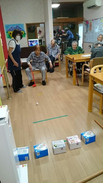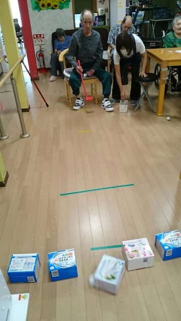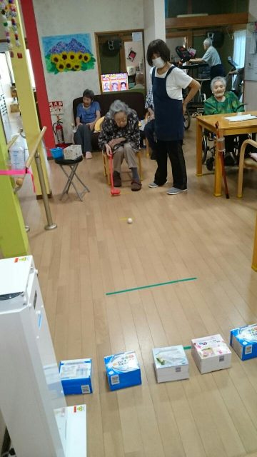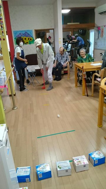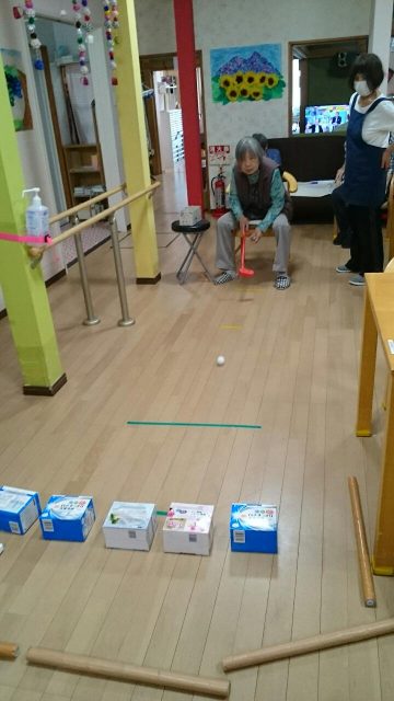 9月最後のレクは「ゴルフボールホールインワンゲーム」