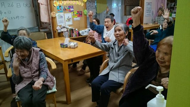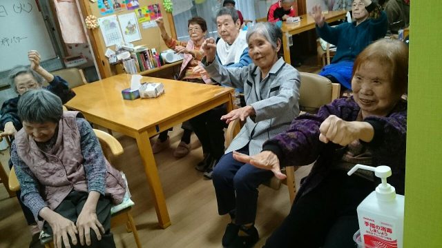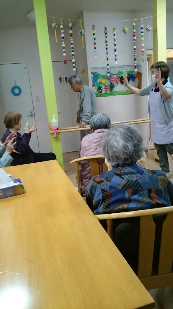 本日のレクは、リズム体操。声を出し、リズムに合わせて体を動かしていただきました。