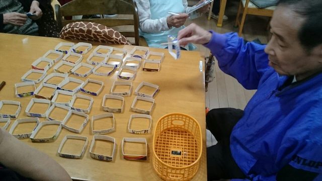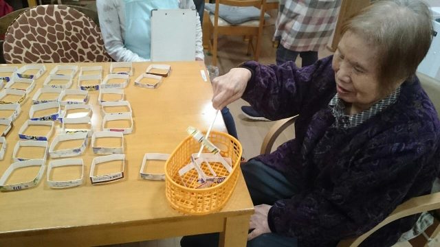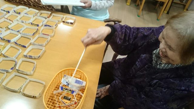 本日のレクリエーションは、牛乳パックすくいを行いました。手首を使ったレクリエーションでリハビリになりました。