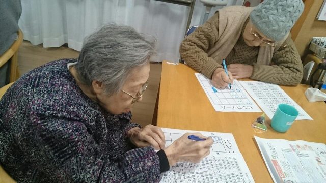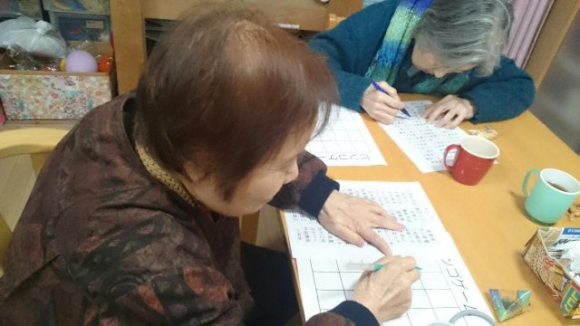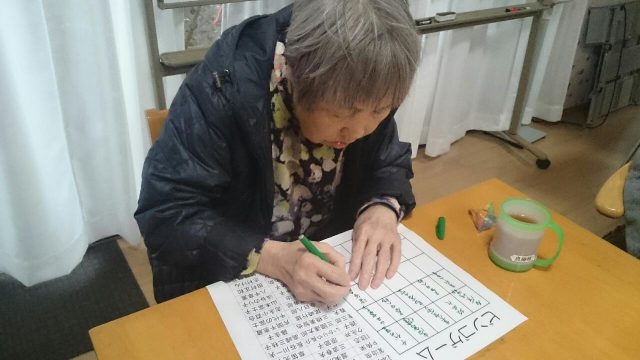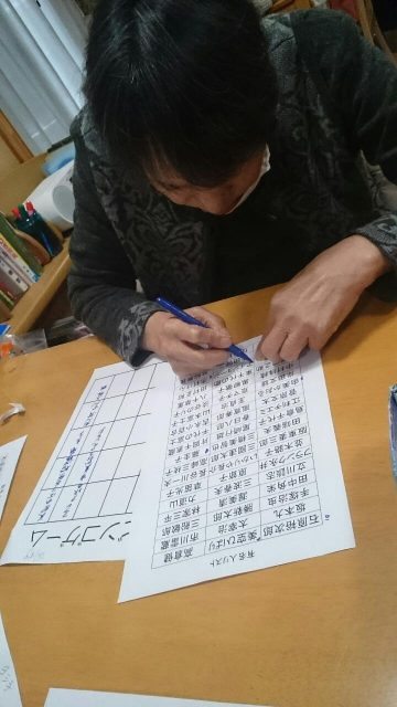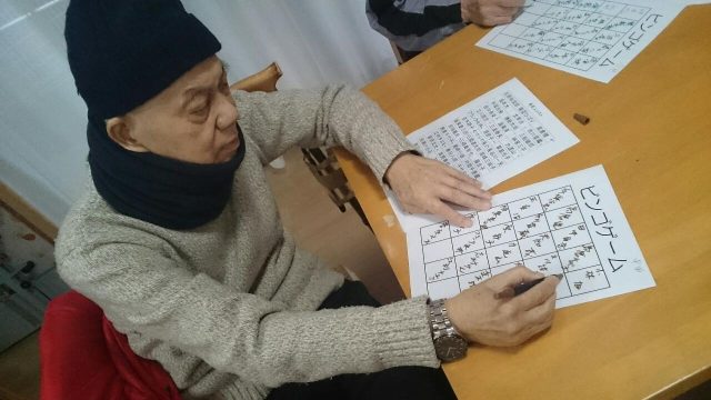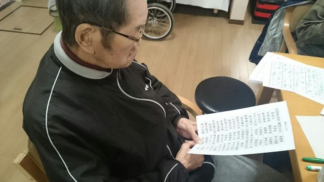 クリスマス会に使用するビンゴゲームの用紙をそれぞれ記入してもらいました。 今回のビンゴゲームは利用者様達が知っている芸能人の名前ビンゴ♪ それぞれの好きな芸能人の名前を選んでもらいました。 当日が楽しみです。(*´∇`)