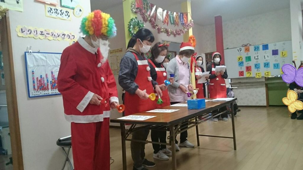 今年もクリスマス会開催しました。 始めてのハンドベルもまぁまぁ良くできたかな😅🎵 間違って音程がはずれるのもまた面白かったですね。 利用者様にも参加していただき、上手にできました。 その他盛りだくさんのゲームと、今年の昼食はオーナー様に牡蠣をいただいたので牡蠣鍋にしました❗😄 イチゴのショートケーキ🍰に、クリスマスプレゼント✨✨🎁✨ 「楽しかった~」の声にホッと一安心😌 今年も無事に終わって良かったです。