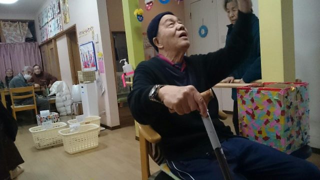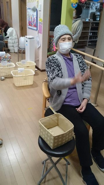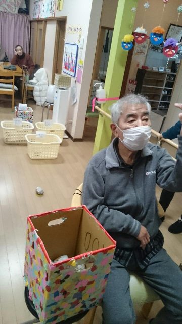 本日のレクは「うしろ投げでポイっ」