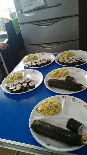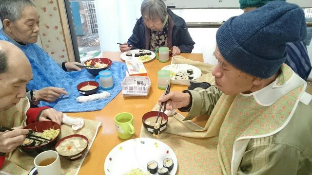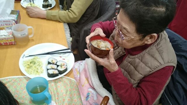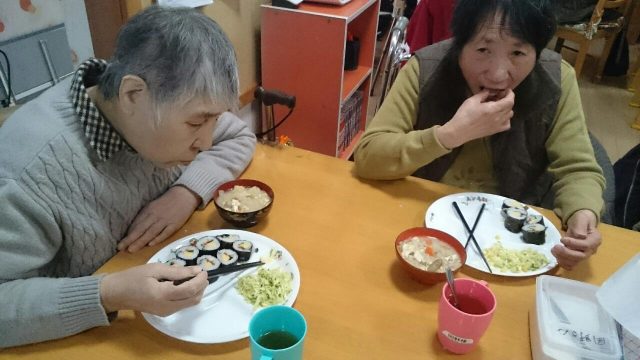 昨日は節分👹 昨日のお昼のメニューは手巻き寿司🌸、サラダ、具だくさん味噌汁😋 皆さん美味しいそうに召し上がっていました。