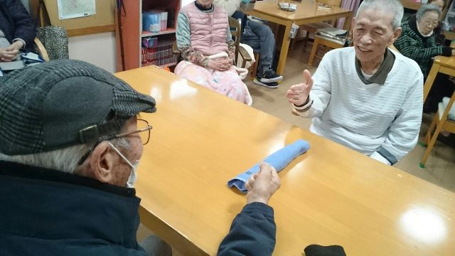 今日のレクは「じゃんけんあいこでホイ」ゲーム