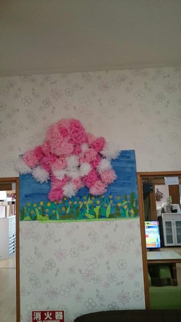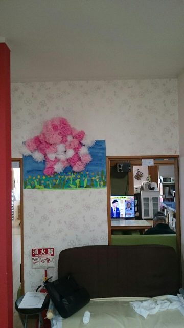 花紙で利用者様に桜を折って頂きました。一つ一つできるごとに綺麗ねと話さしながら作りました。