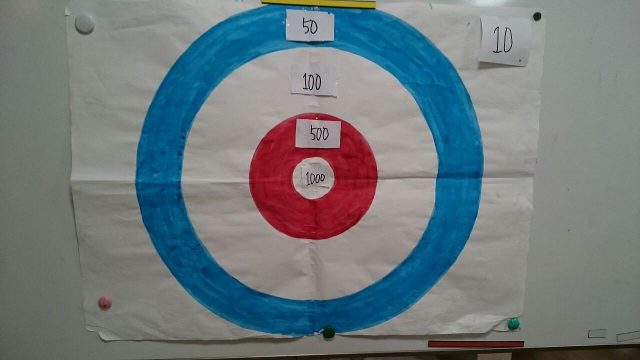 以前行ったマグネットダーツをバージョンアップを図って行いました。ど真ん中の1000点に入った方もいらっしゃいましたよ。バシッと張り付くとスカッとします。
