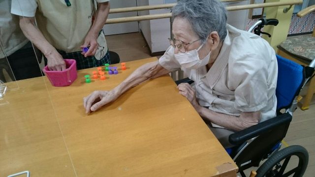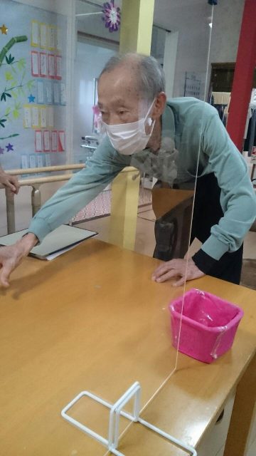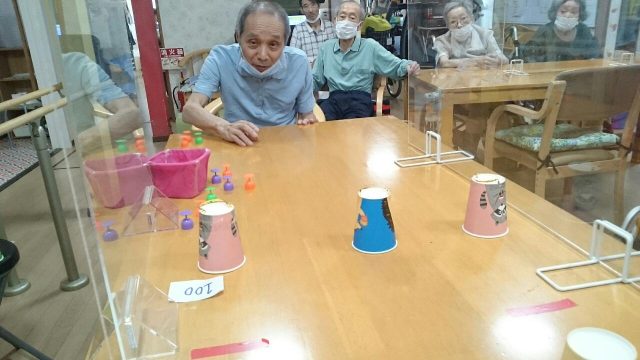今日のレクは「ビー玉転がしゲートくぐりゲーム」