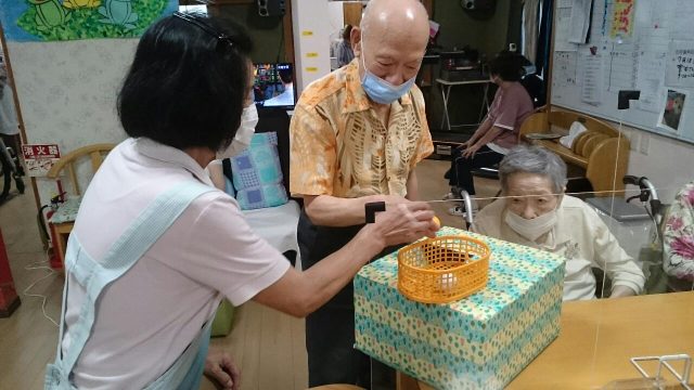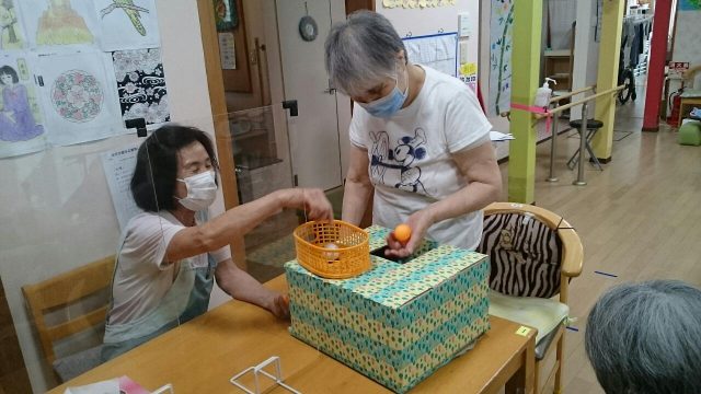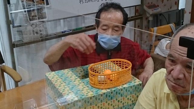 今日のレクは「天国か普通かボールくじ引きゲーム」