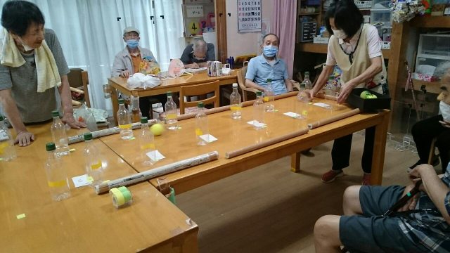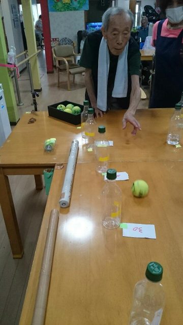 今日のレクは「天国か普通かボールくじ引きゲーム」