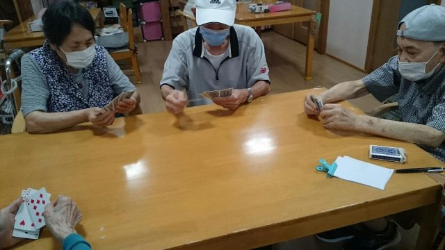 今日は夏の花「ひまわり🌻」の制作活動を行いました。仕上がりが楽しみです。 レクリエーションではカラオケ🎤♪に参加した方、集まってカードゲームを行った方、ゆっくり過ごした方などそれぞれの時間を過ごしました。