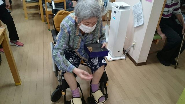 レクの最後に、恒例7月表彰式を行いました。 上位3位までの方と、敢闘賞としていつも頑張っている方にお菓子を贈呈しました。