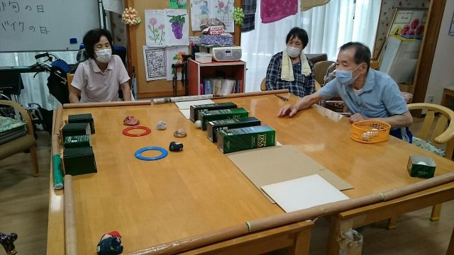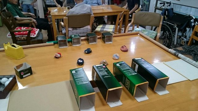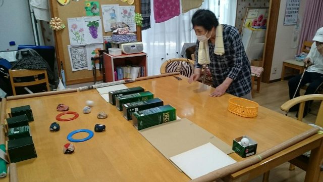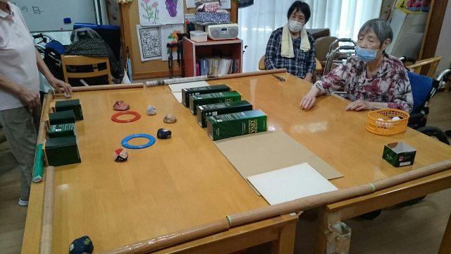 昨日のレクは「マジックボール(お手玉)投げゲーム」