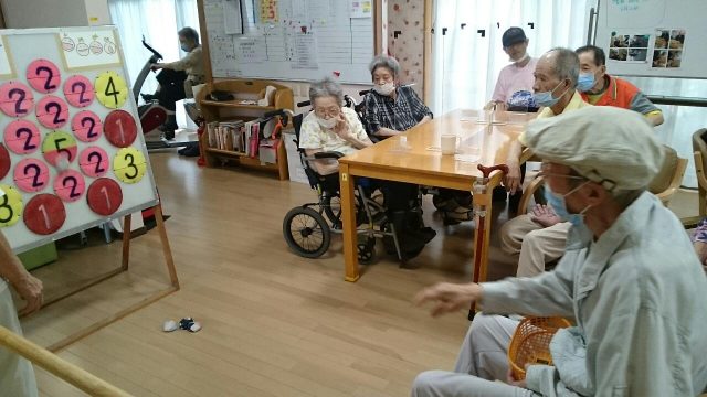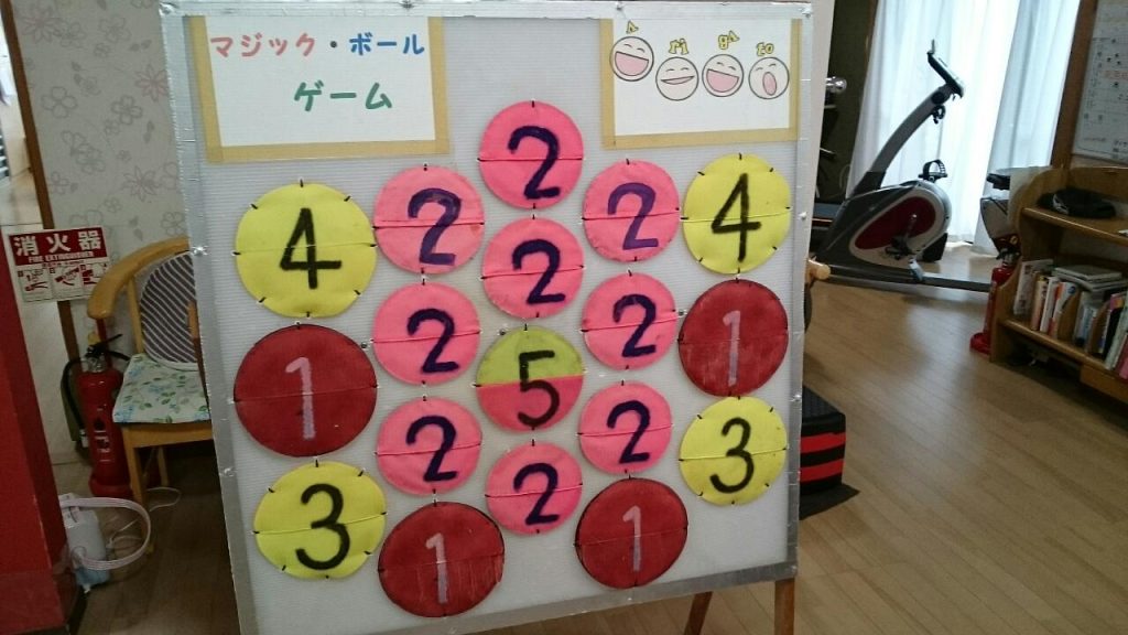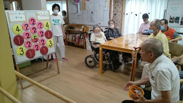 昨日のレクは「マジックボール(お手玉)投げゲーム」
