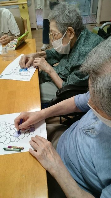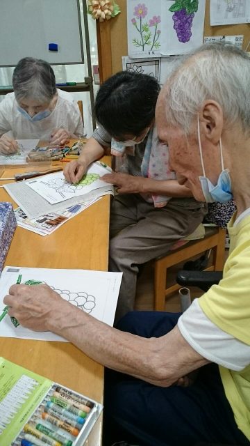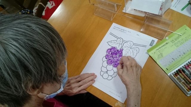 今日の午後は集まってカードを行った方、葡萄の塗り絵を行った方、歴史上の人物の問題のプリントを行った方もいらっしゃいました。