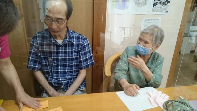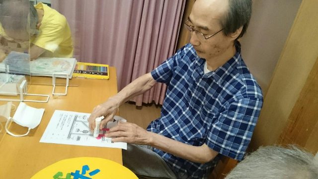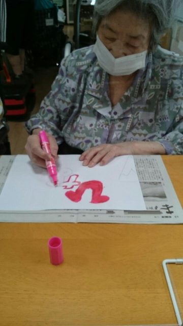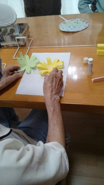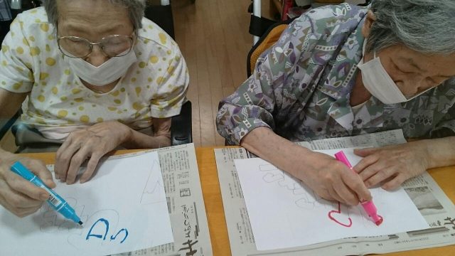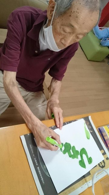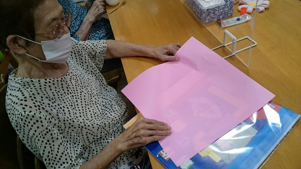 本日の午前中は、皆さんで秋の壁面飾りの制作活動を行いました。 以前居た利用者さんのご家族様から頂いた油性ペン、大きな折り紙を使用して作品を制作中です。出来上がりが楽しみです。