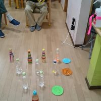 ひなたでは定番の輪投げ。 今回はボウリングのピン状態にペットボトルを並べて得点を競いました。 1列め10点2列め30点3列め50点、そして一番遠いヘッドピンは100点。 見事100点ゲットされた方もいらっしゃいました。