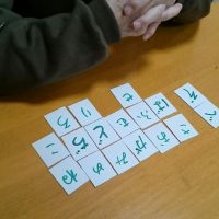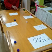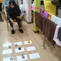 今日のレクは「モールおはじき的入れゲーム」。 テーブルに的を作り、モールをおはじきの要領で指で弾き的を狙います。届かなかったり行きすぎたりなかなか上手くいきません。 優勝された方は1番遠い的に4発入れました!