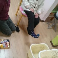 足を使ってお手玉をかごに入れるゲーム。 かごは3つでそれぞれ100点500点1000点! レク担当スタッフが試したところまったく入りません。 これは難易度高い!と思っていたら、1000点連発の利用者さんもいらっしゃいまし …