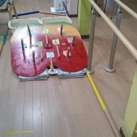 ゴルフボールを転がして紙コップに入れるゲーム。 手前にドボンがあって高得点がなかなか出ません。 それでも1000点出す方がいらっしゃいました。