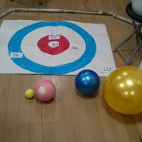 大中小5種類のボールを転がすカーリング。 思うようには転がりません。 1等賞はど真ん中の1000点と500点を命中させていました。 Xperia™タブレットから送信